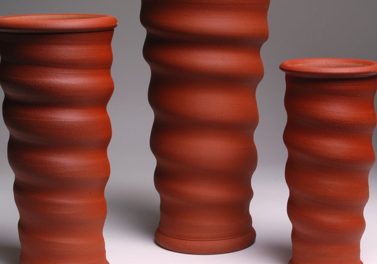 Specializing in terracotta gardenware, and offering quality craftsmanship, William Parkes, with 35 years of experience, brings his expertise from Brook Street Pottery to create frostproof terracotta pieces. "To control the clay on the wheel takes the speed of the unconscious mind, the hands reacting to the movement of the clay before conscious thought is possible. The conscious mind can be the designer but the unconscious mind is the maker. Only through years of dialogue between the hands and the clay is it possible to control this seemingly mysterious process. It is my hope that this dialogue and the immediacy of the wet clay formed in that moment are preserved in the finished work."